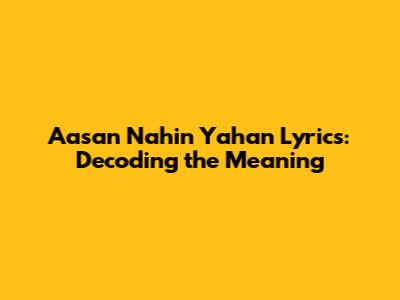 Aasan Nahin Yahan Lyrics: Decoding The Meaning