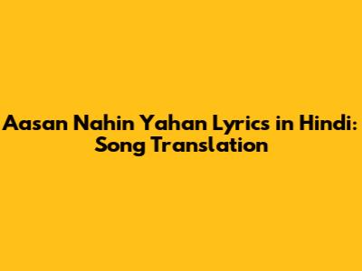 Aasan Nahin Yahan Lyrics In Hindi: Song Translation