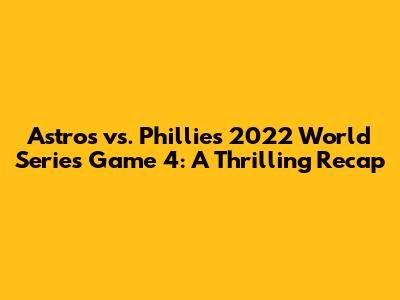 Hey baseball fanatics! Let's rewind to the 2022 World Series, specifically Game 4 between the Houston Astros and the Philadelphia Phillies. It was a nail-biter, a rollercoaster of emotions, and a game that truly showcased the heart and grit of both teams. This recap is for you, guys, so buckle up as we dive into the key moments, the standout performances, and the overall drama that unfolded on that unforgettable night.