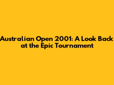 Australian Open 2001: A Look Back At The Epic Tournament
