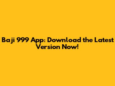 Baji 999 App: Download The Latest Version Now!