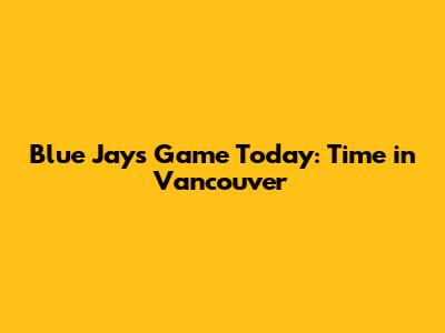Blue Jays Game Today: Time In Vancouver