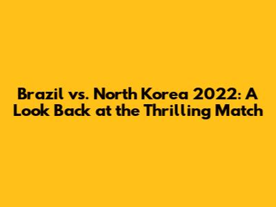 Hey guys! Remember the buzz around the Brazil vs. North Korea match back in 2022? It was a game filled with drama, excitement, and unforgettable moments. This article will take you on a trip down memory lane, diving deep into the key aspects of this match. We'll explore everything from the pre-game hype to the nail-biting final whistle. Get ready to relive the best moments, analyze the strategies, and understand what made this game so special. Whether you're a die-hard fan or just curious about the game, this is the perfect opportunity to refresh your memory and gain some new insights into one of the most talked-about matches of 2022.