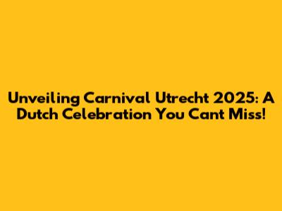 Unveiling Carnival Utrecht 2025: A Dutch Celebration You Can't Miss!