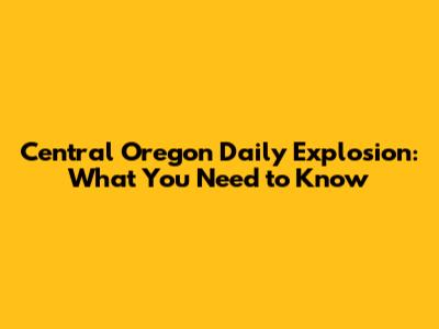 Central Oregon Daily Explosion: What You Need To Know
