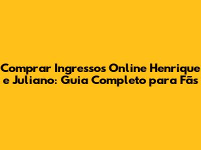 Onde Comprar Ingressos Online Henrique e Juliano: Fontes Confiáveis