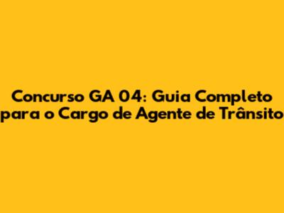 Galera, se você está de olho em uma carreira que combina estabilidade, serviço público e a chance de fazer a diferença na vida das pessoas, então o concurso GA 04 para Agente de Trânsito pode ser a sua chance de ouro! Neste guia completo, vamos mergulhar fundo em tudo que você precisa saber para se preparar e conquistar essa vaga dos sonhos. Desde os requisitos básicos e as atribuições do cargo, até as dicas de estudo e as etapas do processo seletivo, vamos te dar todas as ferramentas necessárias para você se destacar e garantir sua aprovação. Prepare-se para embarcar nessa jornada rumo ao sucesso no mundo do trânsito! E aí, prontos para acelerar rumo à aprovação?