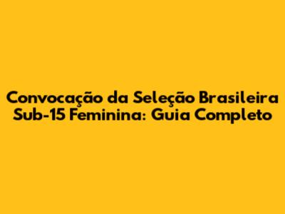 Convocação Da Seleção Brasileira Sub-15 Feminina: Guia Completo
