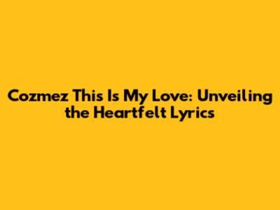 Cozmez This Is My Love: Unveiling The Heartfelt Lyrics
