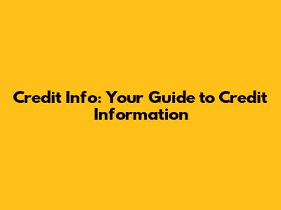 Credit Info: Your Guide To Credit Information