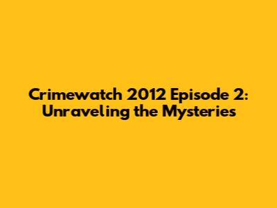 Crimewatch 2012 Episode 2: Unraveling The Mysteries