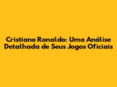 Cristiano Ronaldo: Jogos Oficiais E A Incrível Carreira