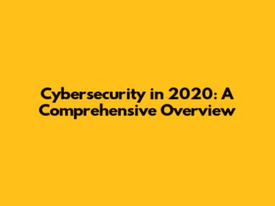Cybersecurity In 2020: A Comprehensive Overview