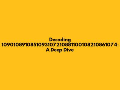 When trying to decipher sequences like 1090108910851093107210881100108210861074, it's helpful to consider different angles. Here are a few potential interpretations: