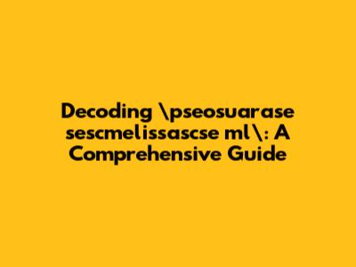 Decoding pseosuarase Sescmelissascse Ml: A Comprehensive Guide