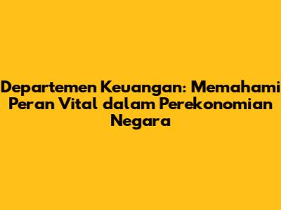 Departemen Keuangan adalah salah satu kementerian dalam pemerintahan yang bertanggung jawab atas pengelolaan keuangan negara. Secara sederhana, Depkeu ini seperti bendahara negara yang mengatur pemasukan dan pengeluaran, serta memastikan uang negara digunakan seefisien dan seefektif mungkin untuk kepentingan rakyat. Tugasnya meliputi perencanaan anggaran, pengelolaan utang negara, pengawasan terhadap penerimaan negara, hingga penyusunan laporan keuangan pemerintah. Bayangkan saja, kalau Depkeu nggak ada, bisa kacau balau keuangan negara kita! So, keberadaan Departemen Keuangan sangatlah krusial dalam menjaga stabilitas ekonomi dan memastikan pembangunan yang berkelanjutan. Selain itu, Departemen Keuangan juga berperan dalam merumuskan kebijakan fiskal, yaitu kebijakan pemerintah dalam mengatur pendapatan dan pengeluaran negara. Kebijakan fiskal ini sangat penting untuk mengendalikan inflasi, mendorong pertumbuhan ekonomi, dan mengurangi kesenjangan sosial. Misalnya, saat ekonomi sedang lesu, pemerintah bisa meningkatkan pengeluaran untuk proyek-proyek infrastruktur untuk menciptakan lapangan kerja dan meningkatkan daya beli masyarakat. Sebaliknya, saat inflasi sedang tinggi, pemerintah bisa mengurangi pengeluaran dan menaikkan pajak untuk menekan permintaan dan menurunkan harga-harga. Kompleks banget kan tugasnya? Tapi, itulah yang membuat Departemen Keuangan menjadi salah satu pilar utama dalam menjaga stabilitas dan kemajuan negara kita. Dengan pengelolaan keuangan yang baik, Departemen Keuangan berkontribusi besar dalam mewujudkan kesejahteraan masyarakat dan pembangunan yang berkelanjutan. Oleh karena itu, penting bagi kita semua untuk memahami peran dan fungsi Departemen Keuangan agar kita bisa ikut mengawasi dan memberikan masukan demi perbaikan pengelolaan keuangan negara.