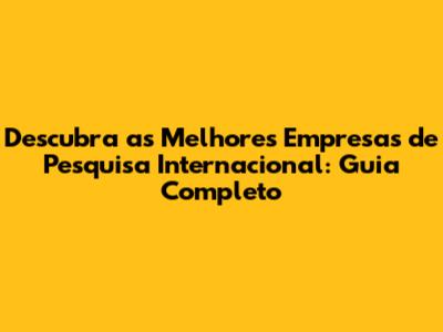 Descubra As Melhores Empresas De Pesquisa Internacional
