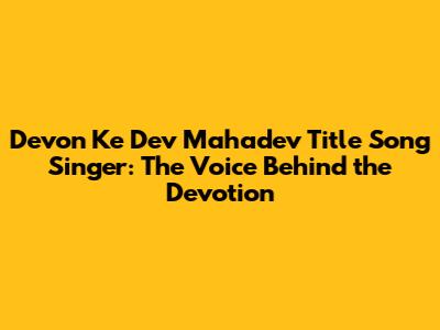 Devon Ke Dev Mahadev Title Song Singer: Unveiling The Voice