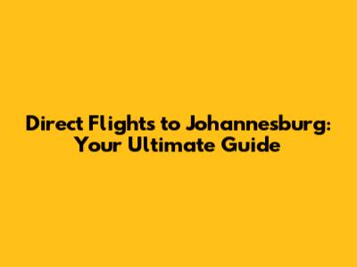 Direct Flights To Johannesburg: Your Ultimate Guide