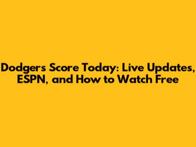 Dodgers Score Today: Live Updates, ESPN, And How To Watch Free