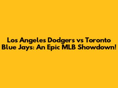 Dodgers Vs Blue Jays: Epic MLB Showdown!