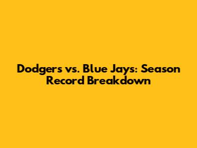 Dodgers Vs. Blue Jays: Season Record Breakdown