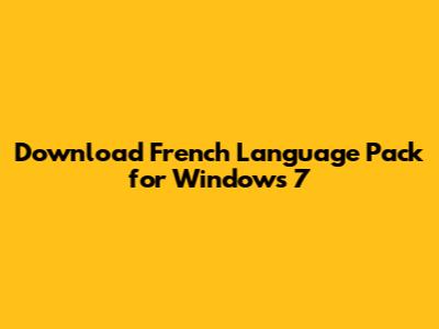 Download French Language Pack For Windows 7