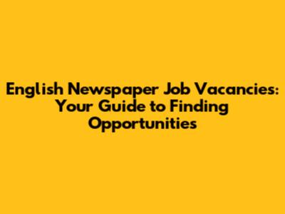 English Newspaper Job Vacancies