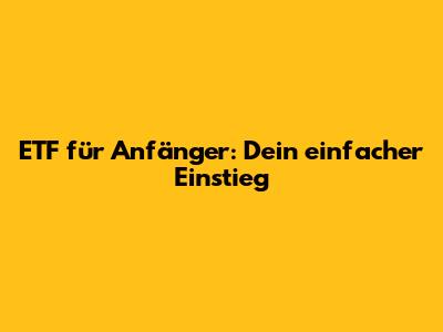 ETF Für Anfänger: Dein Einfacher Einstieg
