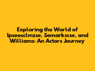 Exploring The World Of Ipseosclmzse, Semarkscse, And Williams: An Actor's Journey