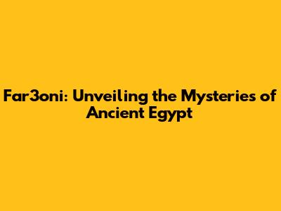 Far3oni: Unveiling The Mysteries Of Ancient Egypt