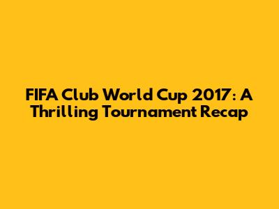 FIFA Club World Cup 2017: A Thrilling Tournament Recap
