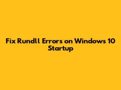 Fix Rundll Errors On Windows 10 Startup