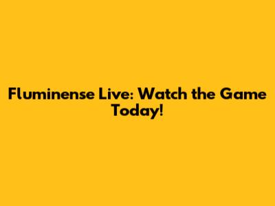 Fluminense Live: Watch The Game Today!