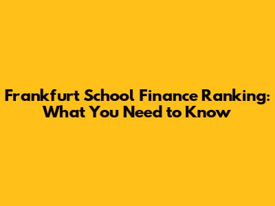 Frankfurt School Finance Ranking: What You Need To Know