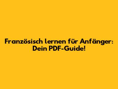 Französisch Lernen Für Anfänger: Dein PDF-Guide!