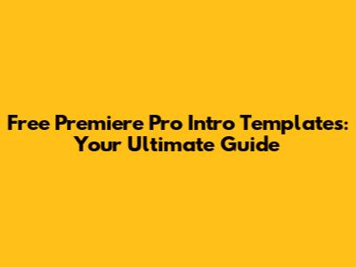 Free Premiere Pro Intro Templates: Get Started Today!