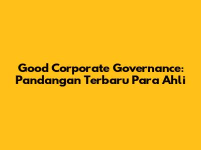 Good Corporate Governance: Pandangan Terbaru Para Ahli
