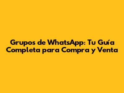 Grupos De WhatsApp: Tu Guía Completa Para Compra Y Venta