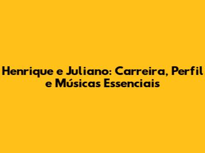 Henrique E Juliano: Carreira, Perfil E Músicas Essenciais