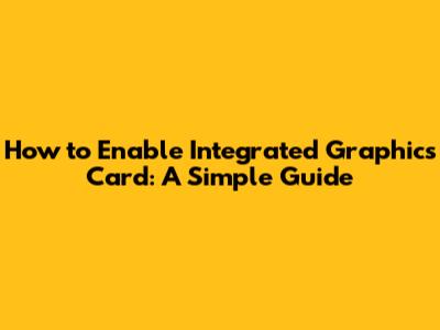 How To Enable Integrated Graphics Card: A Simple Guide