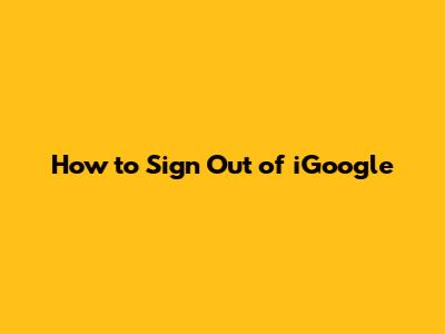 How To Sign Out Of IGoogle