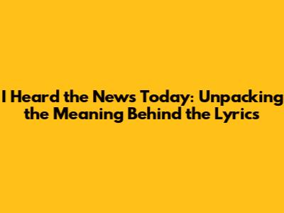 I Heard The News Today: Unpacking The Lyrics