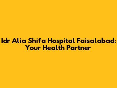 Idr Alia Shifa Hospital Faisalabad: Your Health Partner