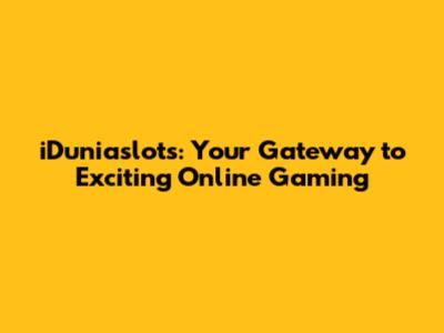 IDuniaslots: Your Gateway To Exciting Online Gaming