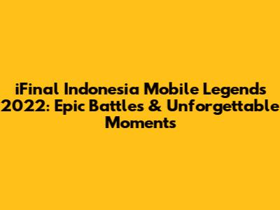 In conclusion, the iFinal Indonesia Mobile Legends 2022 tournament was a celebration of the spirit of MLBB in Indonesia. It was a journey filled with unforgettable matches, epic clashes, and moments of pure brilliance. From the intense rivalries to the strategic masterclasses, the tournament delivered excitement, drama, and a true sense of community.