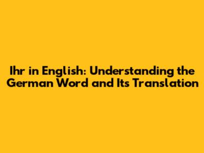 Ihr In English: Meaning, Usage, And Examples
