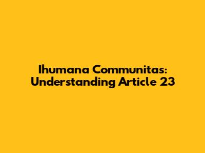 Ihumana Communitas: Understanding Article 23
