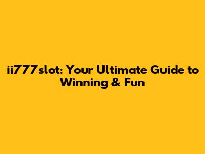 Ii777slot: Your Ultimate Guide To Winning & Fun