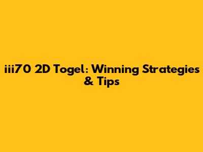 Iii70 2D Togel: Winning Strategies & Tips